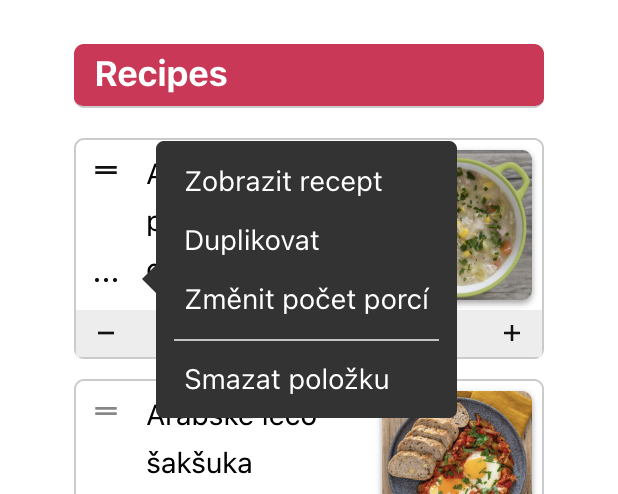5) Jak upravit nákupní seznam? Možnost nastavení počtu porcí se mi nezobrazuje nebo nákupní seznam není aktuální.